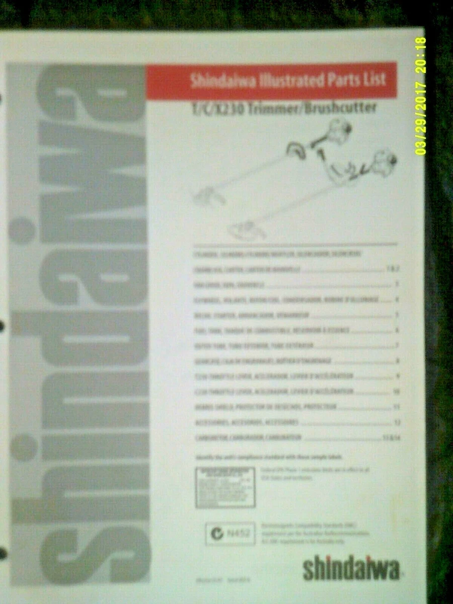 Shindaiwa T230 C230 X230 Trimmer Brushcutter Illustrated Parts List 80216 Ebay